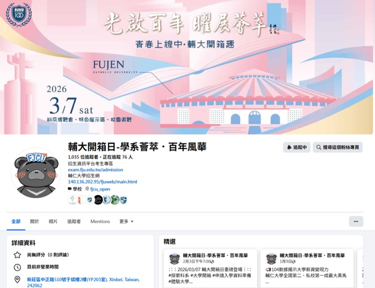 還有,2026.3.7(六) 輔大開箱日-學系薈萃 百年風華