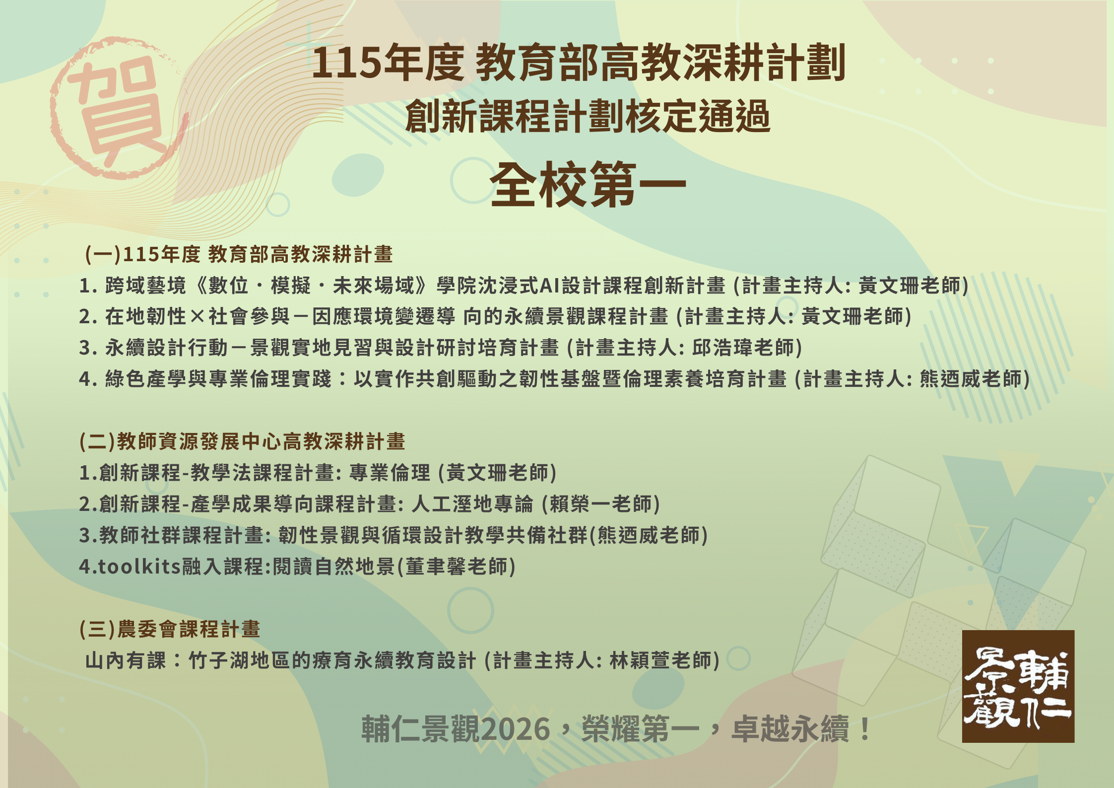 114學年上學期 輔仁大學景觀設計學系 【景觀設計總評一】